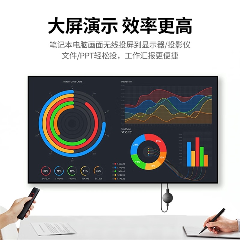 HDMI无线投屏器 视频输出:HDMI母 供电:Type-C 5V±5% 工作电流:300-500mA 分辨率:4K/30Hz 支持系统:Android/iOS/macOS/Windows 10等 彩盒包装