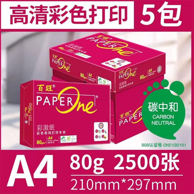 - 商品名称:红百旺A4-80g复印纸 500张*5包/箱