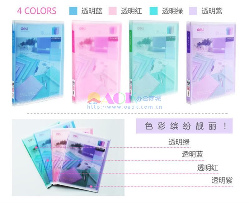 - 商品名称:得力 半透明悦彩系列资料册 A4/40<绿色>
