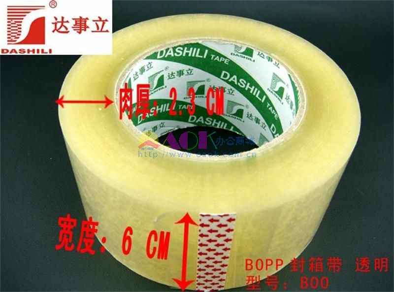 • 商品名称:达事利 6公分宽XB00 BOPP 封箱带 透明封箱胶带(筒/5卷)