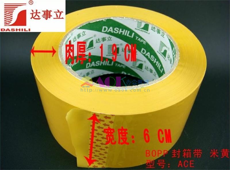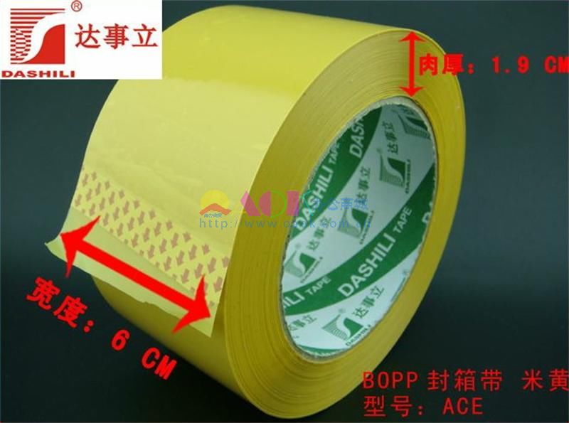 • 商品名称:达事利 6公分宽XACE BOPP 封箱带 米黄封箱胶带(筒/5卷)
