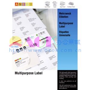 首页 > 办公用纸 > 打印纸 > 电脑标签打印纸 > 安内斯 电脑打印标签纸 圆角(63.5*38.1mm*21)100张/盒
