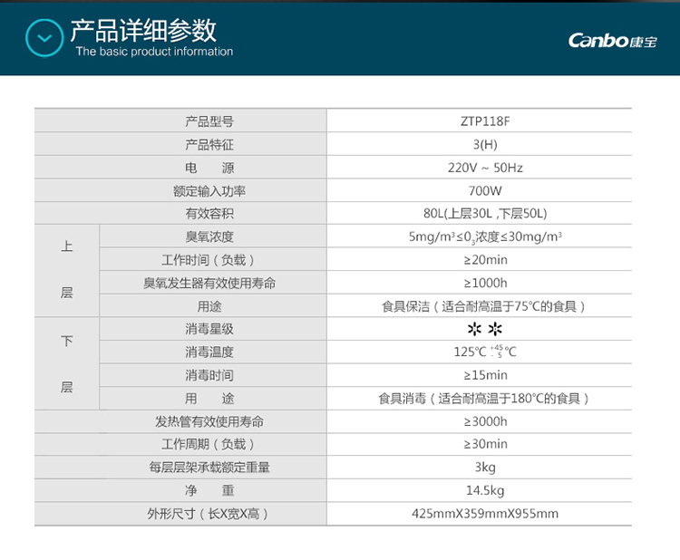 • 商品名称:康宝ZTP118F-3(H) 立式 消毒柜 家用 消毒碗柜