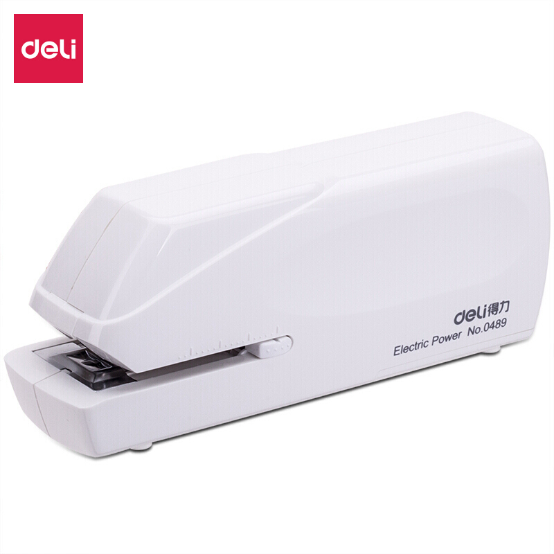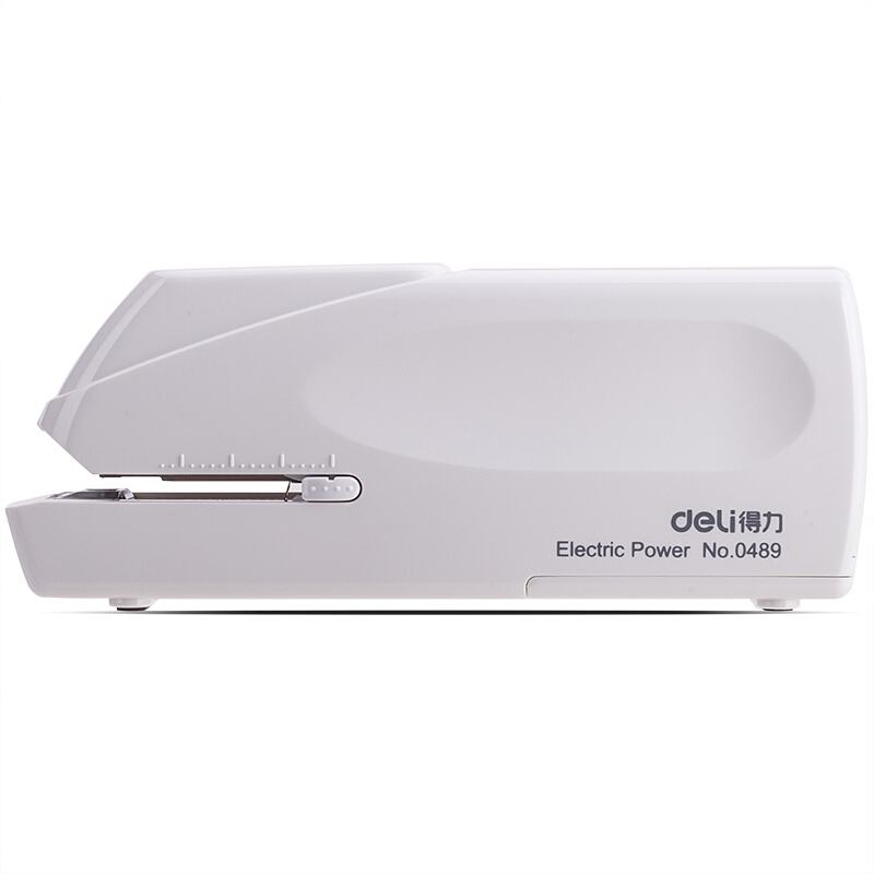 • 商品名称:得力0489双电源电动订书机 电子自动装订订书器 适配24/6 白色