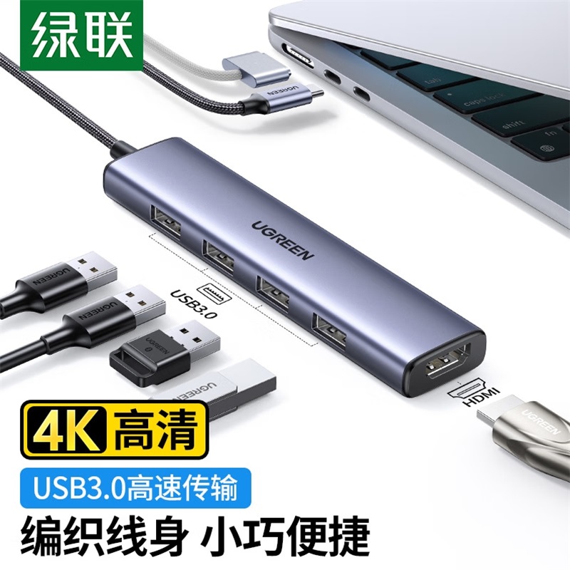 - 商品名称:绿联Type-C转HDMI+4口USB分线器(5G款)20197不带PD分线器款