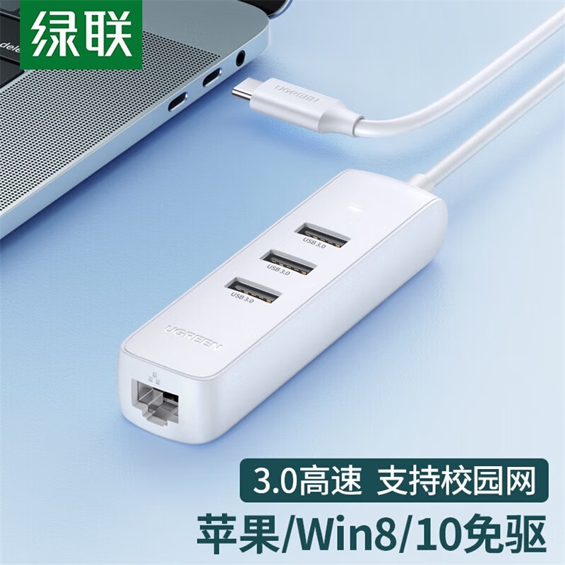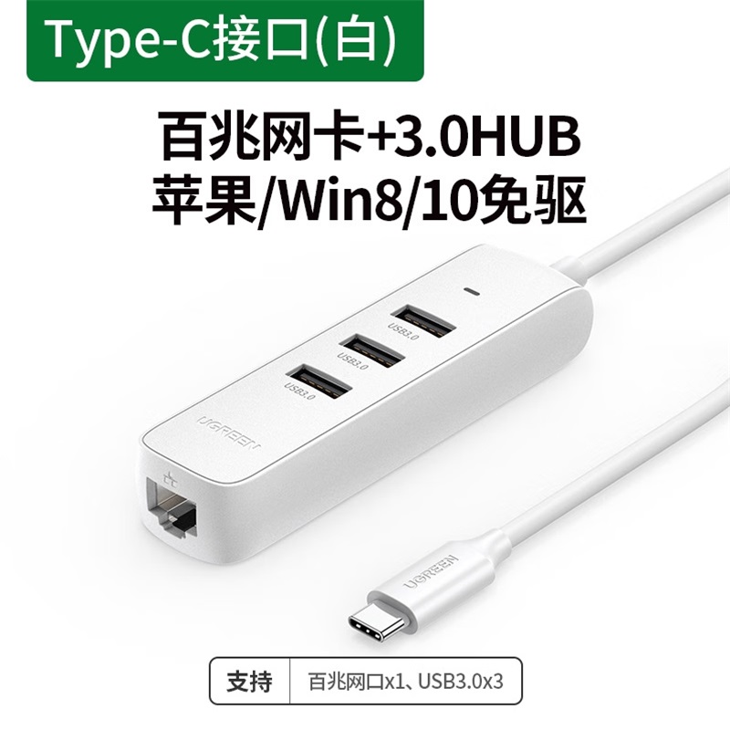 - 商品名称:绿联Type-C网卡集线器50620 3*USB 3.0A母 1*RJ45白色